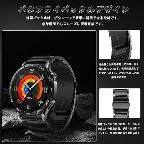 [SinRenn] バンド 22mm Huawei Watch GT 5/GT 5 Pro 46mm/GT 4/GT 3/GT 2/4 Pro 48mm/3 Pro 対応 交換バンド ステンレス ウォッチバンド 金属バンド 調整簡単 長さ調整器具付き コンパチブル Huawei Watch GT 6/GT 6 Pro 46mm/GT 2 Pro (黒)