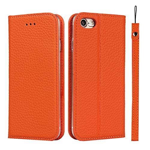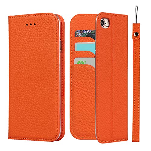 Pelanty For iPhone SE (第3世代) 2022/ SE (第2世代) 2020 ケース手帳型 for iPhone 7/8 スマホケース 牛革製品 本革レザー 財布型カバー カード収納 スタンド機能 内蔵マグネット 手作り柔らかい アイフォンSE3/SE2/7/8 携帯カバー ストラップ付 ヘッドフォンケーブル 耐衝撃 オレンジ