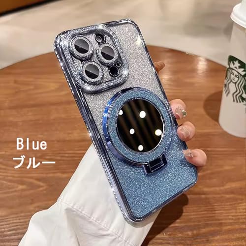 【ラインストーン グラデーションカラー】 For iPhone17 ケース 化粧鏡付き スタンド キラキラ ブリンブリン ピカピカ アイフォン17用カバー スマホケース レディース 女性 かわいい クリスタル おまけ強化ガラスフィルム付き cs121 (i17, ブルー)