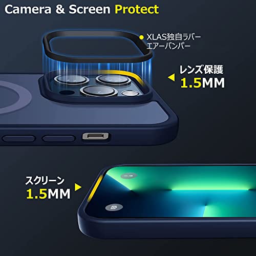 [XLAS] iPhone 13 mini ケース Magsafe 対応 半透明 マット背面 ハイクラス ケース マグネット搭載 TPU 滑り止め ワイヤレス充電 対応 米軍MIL規格取得 耐衝撃 すり傷防止 指紋防止 アイフォン 13 mini カバー ブルー (iphone 13 mini)