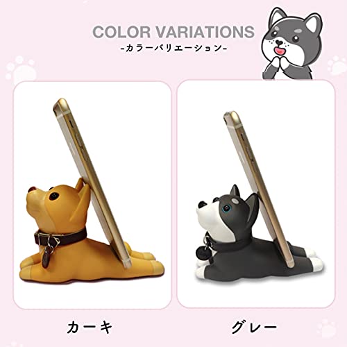[Queen-b] スマホスタンド 犬 ワンちゃん スマホ スタンド かわいい インテリア 携帯 電話 スマートフォン 卓上 ホルダー アニマル 動物 充電 雑貨 グッズ (カーキ)