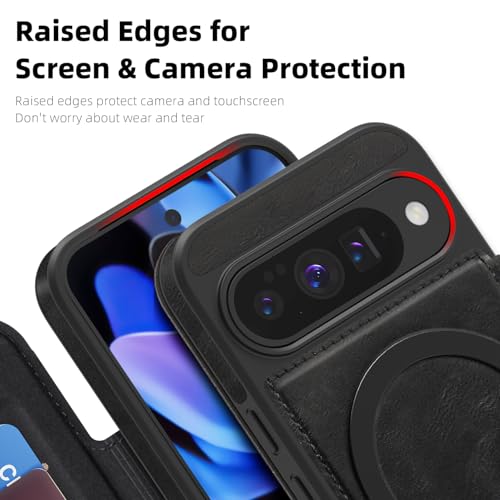 【Google Pixel 10専用】磁気式ワイヤレス充電対応 手帳型ビジネスケース 3カード収納 RFIDブロッキング 皮革 360度防護 TPUソフトフレーム 多機能 カバー 人気 薄型 軽量 独立ボタン 衝撃吸収 かわいい スマホ レンズ保護 滑り防止 個性 ユニーク 反塵 Beautycatcher - 黒