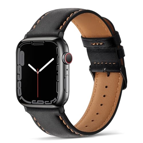 Anlinser コンパチブル Apple Watch バンド 49mm 46mm 45mm 44mm 42mm、本革交換用バンド アップルウォッチ Ultra 3/2/1 シリーズ11/10/9/8/7/6/5/4/3/2/1/SE に対応(ブラック)