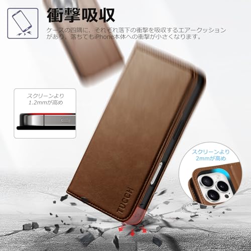 TUCCH iPhone16Pro 対応 ケース 手帳型 アイフォーン16プロ手帳 ケース 耐衝撃 全面保護 3つカードポケット スタンド機能 [RFIDブロッキング] PU合皮 TPU素材 アイフォン16Pro 携帯カバー 2024年発売 6.3インチ アイフォン16プロ 対応 ブラウン