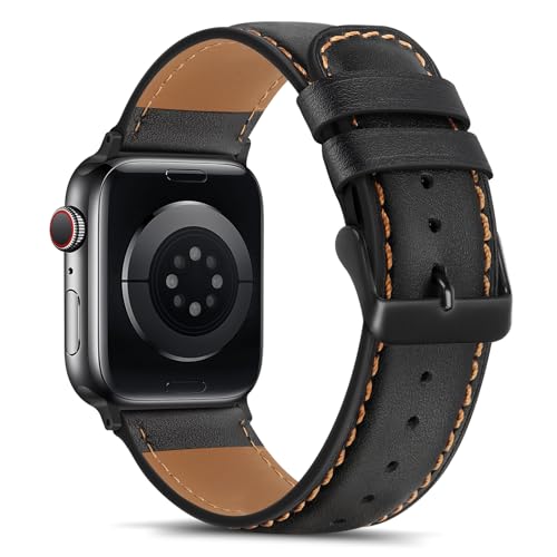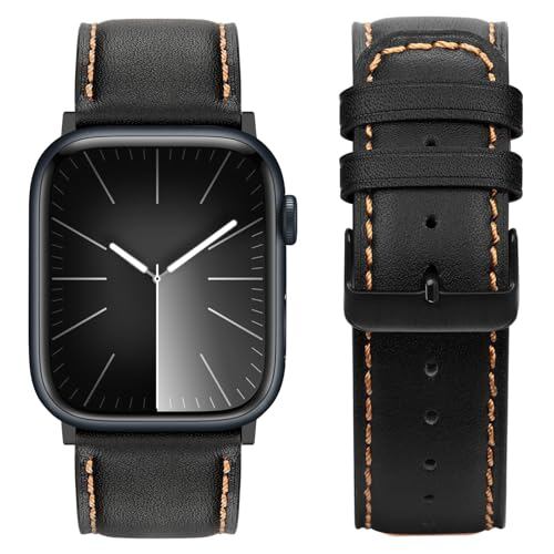 Anlinser コンパチブル Apple Watch バンド 42mm 41mm 40mm 38mm、本革交換用バンド アップルウォッチシリーズ11/10/9/8/7/6/5/4/3/2/1/SE に対応(ブラック)