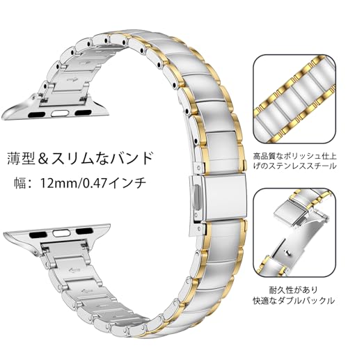 [MioHHR] 超細おしゃれな 対応アップルウォッチ バンド レディース 49mm 46mm 45mm 44mm 42mm(Series 3/2/1)、シンプルで上品、簡単な調整、コンパチブル Apple Watch バンド ステンレス、対応 Apple Watch Ultra/3/2/1、Series 10 9 8 7 6 5 4 SE3 SE2 SE