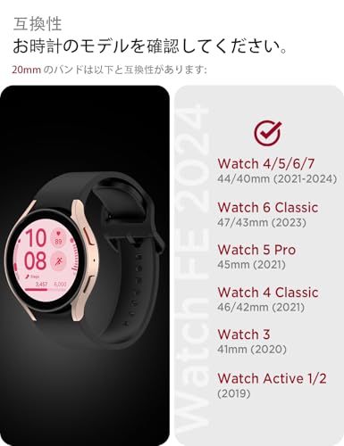 【対応機種】Galaxy Watch FE 40mm /Galaxy Watch 7 (40mm /44mm) /Galaxy Watch 6 Classic(43mm/47mm) / Galaxy Watch 6 (40mm /44mm) /Galaxy Watch 5 (40mm /44mm) /Galaxy Watch 5 Pro 45mm /Galaxy Watch 4 (40mm /44mm) /Galaxy Watch 4 Classic (42mm/46mm)/Galaxy Watch Active 2 (40mm/44mm)/Galaxy Watch Active 40mmに対応します。ご注文のときに機種などを確認してください。