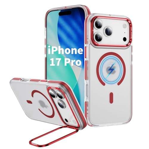 TOO&SOO 対応 iPhone 17 Pro ケース 半透明 magsafe対応 いphone17pro ケース ワイヤレス充電対応 カメラ保護 調整可能ブラケット 防指紋 黄変防止 滑り止め 車載ホルダー 対応 あいふおん17pro携帯カバー アイフォン17プロ カバー 耐衝撃 傷つけ防止 よ肌触り TPU シンプルさ 人気 上質 赤