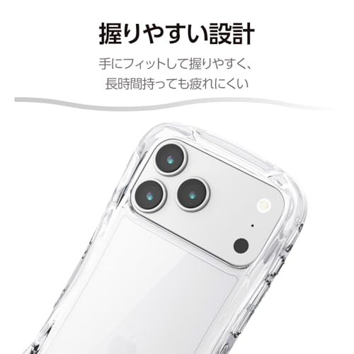 エレコム iPhone 17 Pro Max ケース カバー クリア 耐衝撃 衝撃吸収 ハイブリッド TPU Grippy 手に馴染む グリップ感 ストラップホール付き カメラ保護 メタルステッカー付属 ストラップシート付き オールクリア PM-A25DGRPACR
