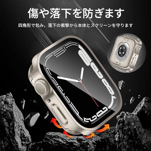 YUGYUG 対応 Apple Watch ケース Series 11/10 Apple Watch カバー PC素材 IP68 防水 360ど度 3D直角エッジデザイン アップルウォッチ ケース ガラスフィルム 一体型 日本旭硝子材 二重構造 アップルウォッチ カバー 全面保護 強化ガラス キズ防止(46mm,スターライト)
