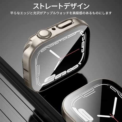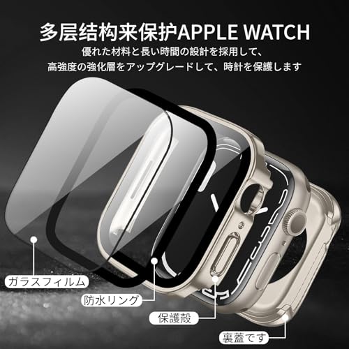 YUGYUG 対応 Apple Watch ケース Series 9/8/7 Apple Watch カバー PC素材 IP68 防水 360ど度 3D直角エッジデザイン アップルウォッチ ケース ガラスフィルム 一体型 日本旭硝子材 二重構造 アップルウォッチ カバー 全面保護 強化ガラス キズ防止(45mm,スターライト)