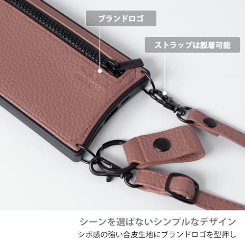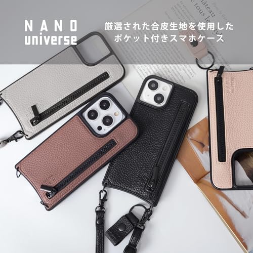 【 nano・universe 正規品 】 iPhone15 Pro 対応 ケース 「 ロングストラップ ポケット付き背面ケース 」ナノユニバース 小物収納 カード入れ付き アイフォン15プロ用 iPhone 15Pro用 ブランド スマホケース (ピンクブラウン)