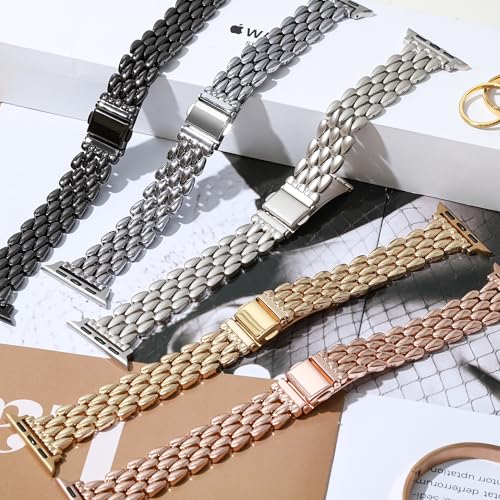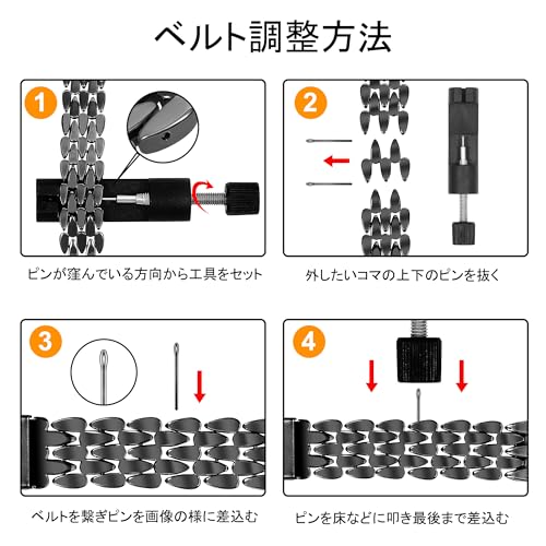 HANDODO for Apple Watch バンド ステンレス 49mm 46mm 45mm 44mm アップルウォッチ バンド おしゃれ 可愛い 細身 レディース Series 10/9/8/7/6/5/4/SE/Ultraに対応 調整工具付き(ブラック)