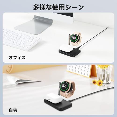 【幅広い互換性】Samsung Galaxy Watchシリーズ(Watch 3/4/4 classic/5/5 pro/6/7/8、Active 1/2など)に幅広く対応。また、AirPods Pro/3/2(ワイヤレス充電ケース対応モデル)など、さまざまなワイヤレスイヤホンの充電もサポートします。