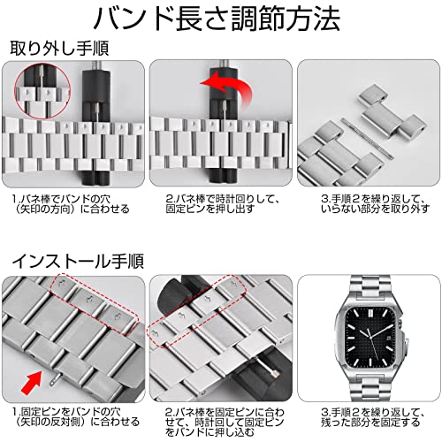 『取り付け簡単&操作便利』このステンレス鋼バンドの背面カバーを外してApple Watchを入れてからネジで閉めて、iWatchを全方位保護でき、落下防止できます。ケースの右側に操作ボタンがあります。Apple Watch Ultra/Ultra2 を自由に操作できます。また、ケース装着していても、邪魔なくタッチや充電などができます。