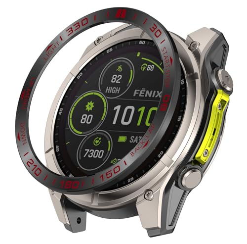 SHEAWA for Garminガーミン Fenix 8 AMOLED 47mm ベゼルリング 2個セット 保護リング ステンレス カバー ケース 傷防止 耐衝撃 アクセサリー (ブラック×レッド+シルバー×レッド)