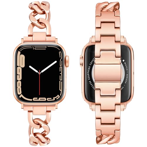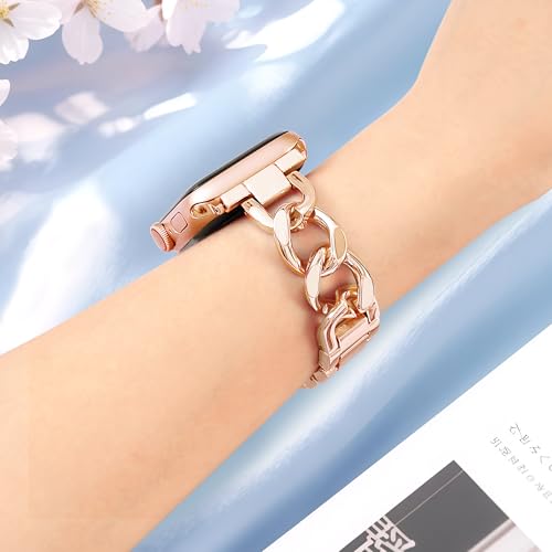 Aniaboho アップルウォッチ バンド 立体リングデザイン メタルベルト apple watch バンド 折りたたみ式バックル 金属チェーン 46mm 45mm 44mm (42mm Series 3/2/1) iWatch series 11 SE 10 9 8 7 6 5 4 3 2 1対応 (ローズゴールド)