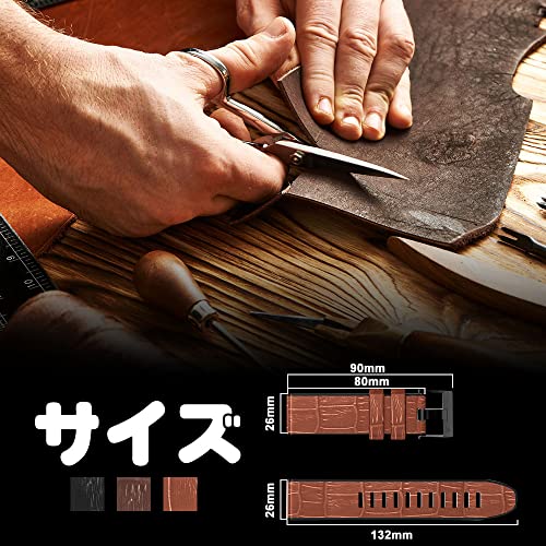 【素敵な素材】最上層は牛革から得られた抽出革で作られております。ソフトなレザーを使用し、ゴージャスな新しい革のアロマ、吸汗性、耐摩耗性があります。手作りのクラフト、絶妙なステッチ、耐久性に優れています。本革の静脈/天然毛穴の違いにより、受け取った時計バンドはそれぞれユニークです。高級のソフトなレザーで仕上がり、滑り止め、耐久性、通気性、研磨技術を利用します。肌触りが柔らかくて快適です