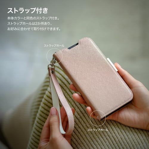 【Corallo】 AQUOS wish5 対応 ケース 手帳型 カード 収納 ストラップ スタンド 付 スマホケース 合成 皮 革 デニム 携帯ケース [ AQUOS wish 5 アクオスwish5 SH-52F 対応 ] NU シャンパンローズ×ホワイト
