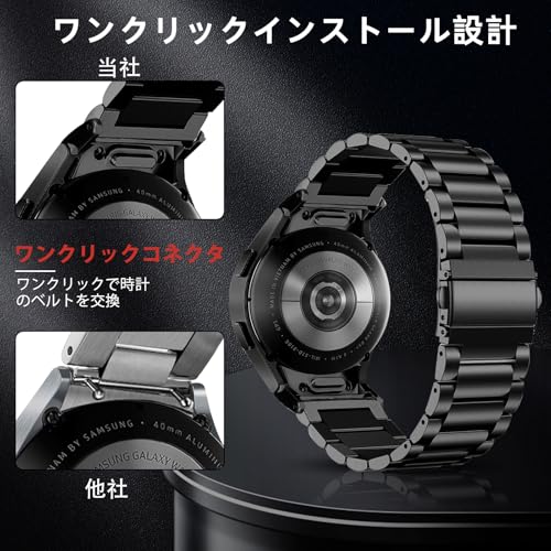 YealRed バンド For Samsung Galaxy Watch 7 6 5 4 40mm 44mm 交換バンド Galaxy Watch FE 40mm ベルト ステンレスメタル ワンタッチ 換えバンド クイックリリースボタン アクセサリー 替えベルト For Galaxy Watch 6 Classic/5 Pro 45mm/4 Classic(ブラック)