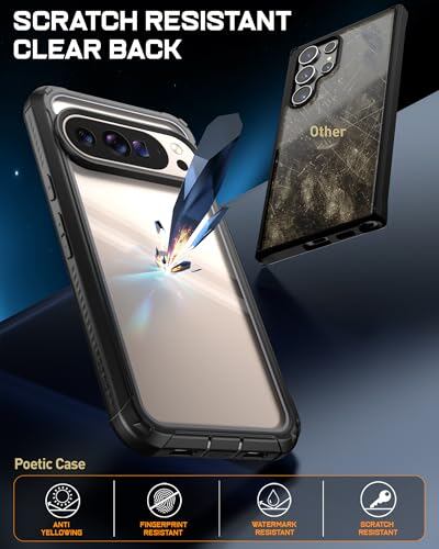 POETIC Guardianケース Google Pixel 10 Pro XL 5G用 スクリーンプロテクター内蔵 [指紋認証対応] [フロントフレーム2枚] [ワイヤレス充電] フルボディ耐衝撃頑丈クリアカバーケース ブラック/クリア