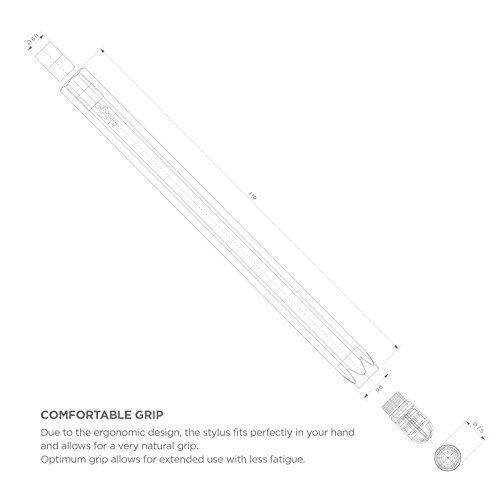 ◆ 製品サイズ:約12.5cm × 0.85cmcm ◆ 製品重量 : 約 13g ◆使用素材 : アルミニウム、シリコン ◆ パッケージ内容 : アルミ スタイラス × 1個、スタイラス 替え芯 × 1個