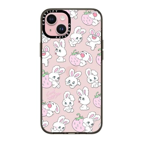 コンパクト iPhone 15 Plus ケース [MIL規格準拠 (2x MIL-STD-810G) / 1.2mからの落下テストをクリア] - Strawberry Mix - クリア ブラック
