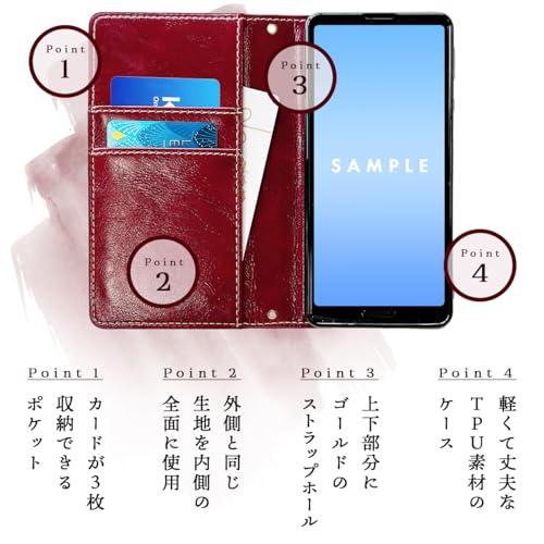 AQUOS zero6 SHG04 A102SH SH-RM18 ケース 手帳型 カバー shrm18 shg04ケース shg04カバー a102shケース a102shカバー sh-rm18ケース sh-rm18カバー アクオス 手帳型ケース スマホケース 新タフ winered