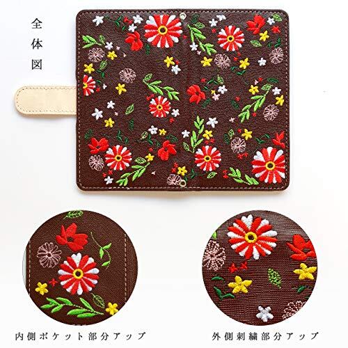 らくらくスマートフォン F-53E 用 手帳型 ケース カバー F-53Eケース F-53Eカバー 用 手帳型ケース スマホケース ちょいヌメ花刺繍 ブラウン