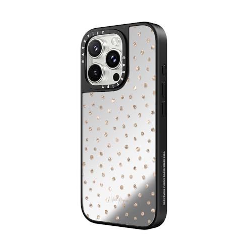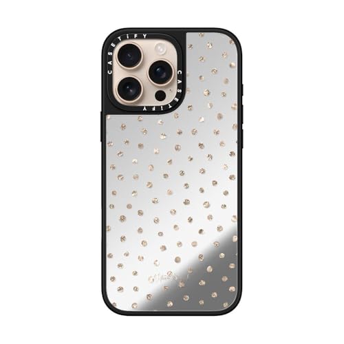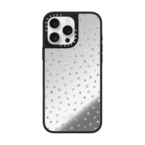 ミラー MagSafe対応 iPhone 16 Pro Max ケース [反射性 / 1.5mからの落下試験をクリア (MIL規格1倍相当) / ワイヤレス充電およびMagsafe対応] - Girly Gold Dots - シルバー (ブラックバンパー)