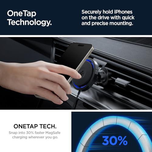 Spigen カーマウント magsafe 充電器 放熱 冷却 騒音防止 エアー ベント・フック 用 iPhone 15 14 13 12用 OneTap Pro 3 Cryomax Magfit カーワイヤレス充電器 ITS13WC (ブラック)