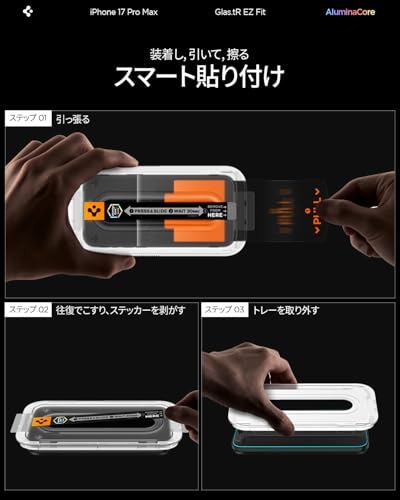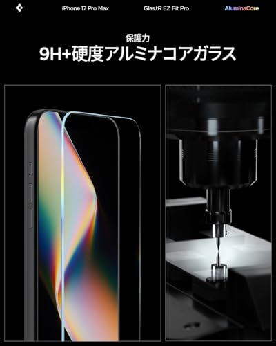 Spigen iPhone 17 Pro Max ガラスフィルム iPhone 16 Pro Max 対応 9H+硬度強化ガラス 米軍規格落下テスト済み 貼り付けキット付き EZ Fit Pro ナノコーティング 飛散防止 AGL09995