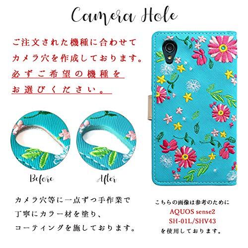 トレンドエスエスエス スマホケース [互換:XPERIA 1 V SO-51D SOG10 XQ-DQ44 Gaming Edition A301SO 対応] 手帳型 ケース カバー 手帳ケース 手帳型ケース ちょいヌメ花刺繍 ターコイズ