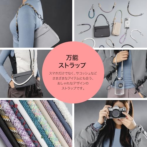 【万能ストラップ】… スマホだけでなく、サコッシュなどさまざまなアイテムにも合う、おしゃれなデザインのストラップです。