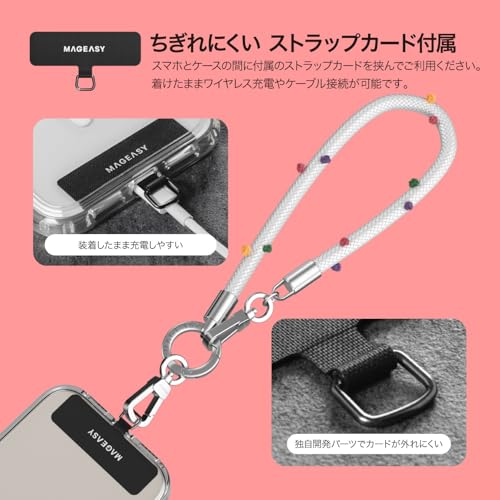 【製品特徴】… ◆ 長さ調整 : 不可 ◆ カラビナ (円形) : 付属 ◆ ストラップカード : あり ◆ 装着方法 : デバイスとケースの間にストラップカードを挟んでください。 ◆ ご注意 : ※乳幼児を含む、お子様には絶対に使用させないでください。※本製品が引っかかったり、挟まれたりしないようご注意ください。