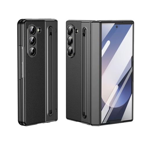 Galaxy Z Fold 5 用 ケース レザーテクスチャギャラクシー Z フォールド5ケース ストラップホール ヒンジ保 保護カバー Sペン内蔵収納 メッキ 薄型 軽量 (黒) 25-Fold 5-01