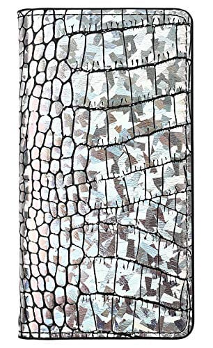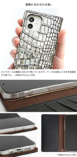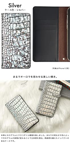 iPhone 15 ケース 本革 ホログラム クロコダイル模様 ワニ柄 スマホケース 手帳型 スマホ カバー カード入れ ベルトなし マグネット不使用 ストラップホール (iPhone15, シルバー)