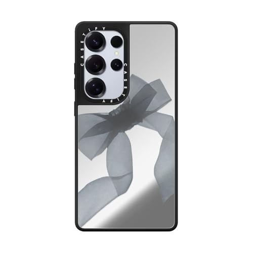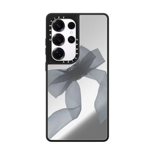 ミラーマグネット Samsung Galaxy S25 Ultra ケース [反射性 / 1.5mからの落下試験をクリア / Magsafe に対応] - Black Organza Ribbon - シルバー (ブラックバンパー)