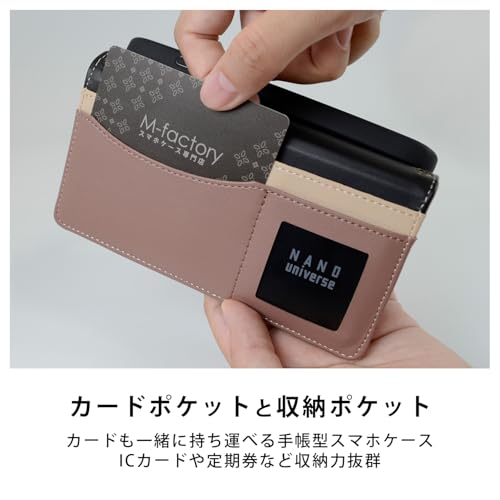 M-factory ナノユニバース iPhone16 Pro 手帳型ケース バイカラー ココア カード収納 開閉サポート ミラー付き