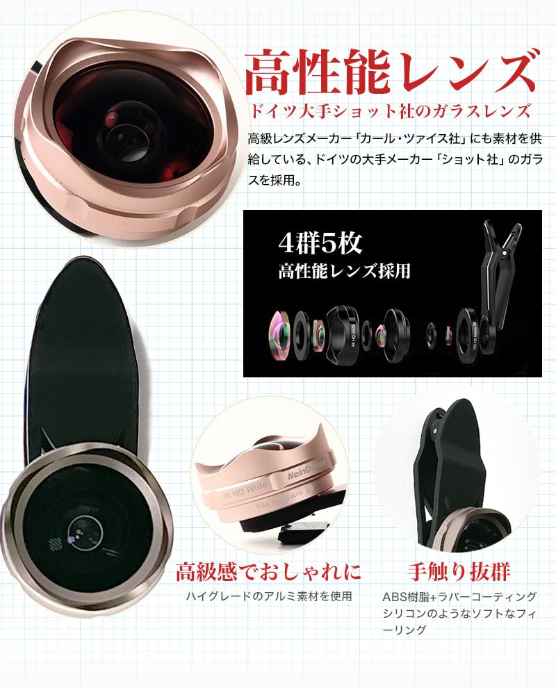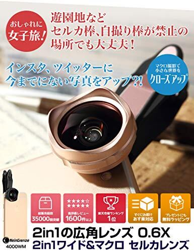 セルカレンズ スマホ や iPhone に対応 広角 レンズ 歪み、ケラレなし 4000WM(ブラック)