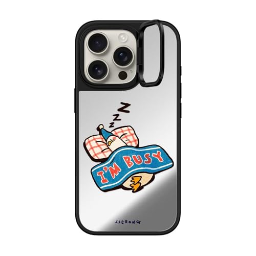 ミラー リングスタンド MagSafe対応 iPhone 16 Pro ケース [キックスタンド / 1.5mからの落下試験をクリア (MIL規格1倍相当) / ワイヤレス充電およびMagsafe対応] - I'm so busy - シルバー (シルバーバンパー)