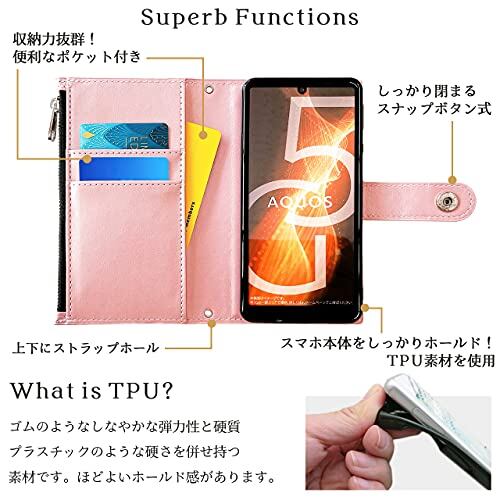 AQUOS R7 SH-52C A202SH 手帳型 ケース カバー SH52C SH-52Cケース SH-52Cカバー A202SHケース A202SHカバー SH52Cケース SH52Cカバー 手帳ケース 手帳型ケース スマホケース おしゃれ部長 ピンクゴールド