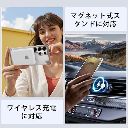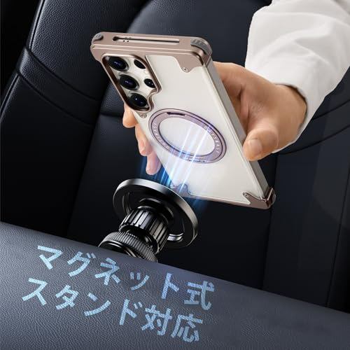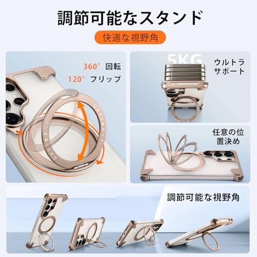 NIFBANG Samsung Galaxy S25 Ultra用フレームレスケース クリア バンパー ギャラクシーS25 Ultra用クリアケース マグネット対応 ワイヤレス充電可能 リングマグネット搭載 角度調整スタンド 耐衝撃性 米軍規格 縦横両対応 落下防止 レンズ保護 四隅エアバッグ ミニマリスト薄型ギャラクシー S25 Ultra カバー グリップ感 かっこいい