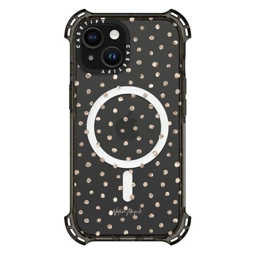 バウンス MagSafe対応 iPhone 15 ケース [MIL規格準拠 (6x MIL-STD-810G) / 6.5mからの落下試験をクリア / MagSafe に対応] - Girly Gold Dots - クリアブラック