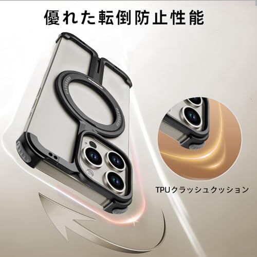 【NIFBANG】iPhone 16 Pro Max 用 フレームレスケース 金属バンパー リングマグネット スタンド 落下防止 米軍規格 耐衝撃 レンズ保護 四隅エアバッグ ミニマリスト薄型 ブラック