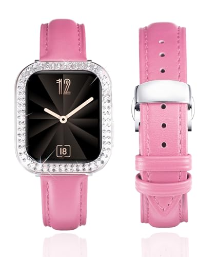 コンパチブル Apple Watch バンド 40mm 41mm 42mm 44mm 45mm 46mm レディース コンパチブル アップルウォッチバンド レザー 革ベルトキラキラダイヤモンド保護ケースー付きレディース コンパチブル iWatch Series 11/10/9/8/7/6/5/4/SE3/SE2/SE(42mm,ローズレッド/トランスペアレント)