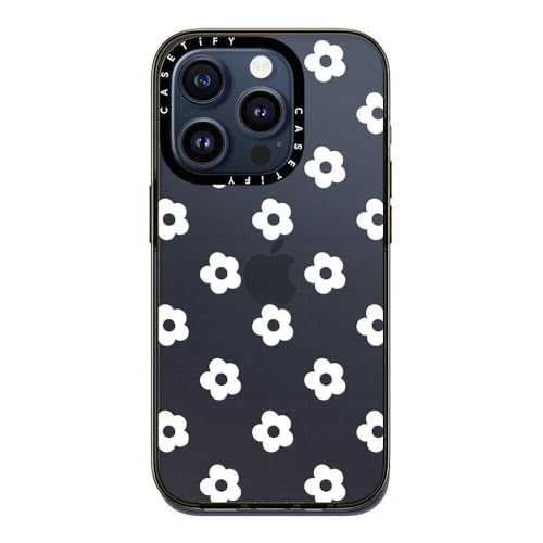 コンパクト iPhone 15 Pro ケース [MIL規格準拠 (2x MIL-STD-810G) / 1.2mからの落下テストをクリア] - Ditsy Daisies - White - クリア ブラック