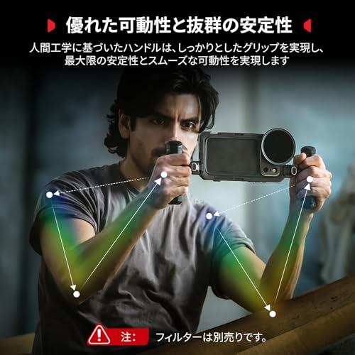 【保護と放熱】フルエンクロージャーのメタルフレームがスマートフォンを全面的に保護し、衝撃吸収と傷防止に役立ちます。水中撮影や高性能放熱が求められるシーンでは、ケージ内のTPUソフトラバーフレームと組み合わせることで、ケースを装着したままスマートフォンを使用できます。
