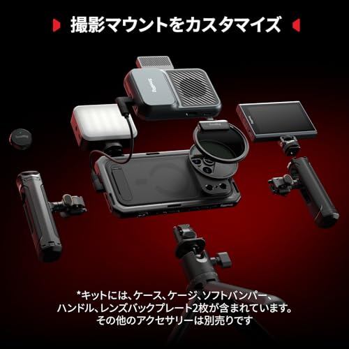 【デュアルハンドヘルドキット】SmallRig スマホビデオリグ 5540はiPhone 17 Pro専用に設計されており、スマホデバイスでのプロレベルのビデオ撮影、ライブストリーミング、映画制作を容易にします。このキットには、iPhone 17 Pro用のスマホケース、ビデオケージ、ワイヤレスコントロール付き回転式サイドハンドル、回転式サイドハンドル、TPUソフトバンパーが含まれています。