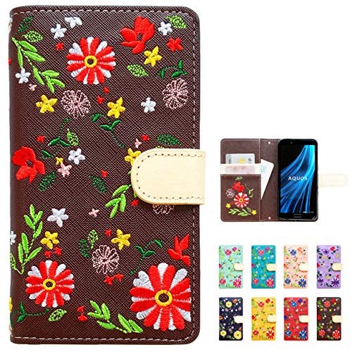 KYV43 BASIO 3 手帳型 ケース カバー BASIO3 BASIO3ケース BASIO3カバー KYV43ケース KYV43カバー 手帳ケース 手帳型ケース スマホケース ちょいヌメ花刺繍 ブラウン